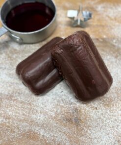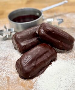 Vollendet wird dieser außergewöhnliche Stollen mit einem Überzug aus echter, zartschmelzender Kuvertüre, die den Geschmack perfekt abrundet und ihm eine edle, schokoladige Eleganz verleiht.