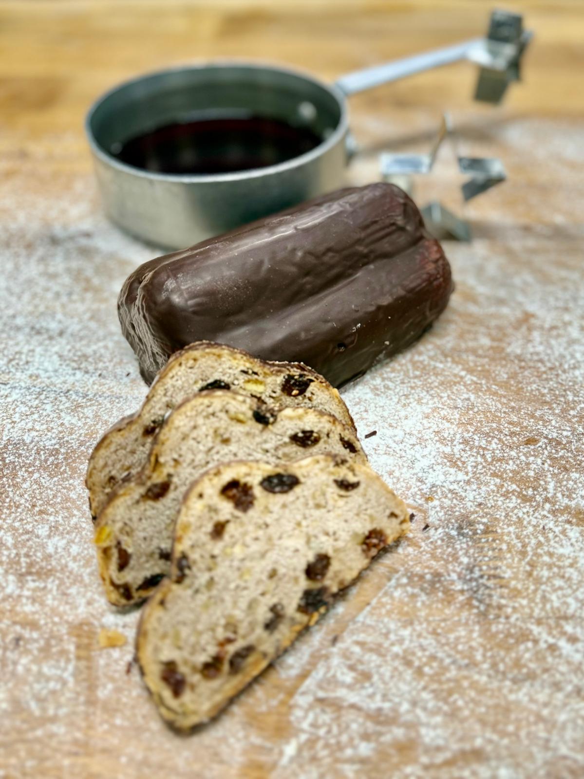 Glühweinstollen – winterlich aromatisch & edel mit Kuvertüre veredelt