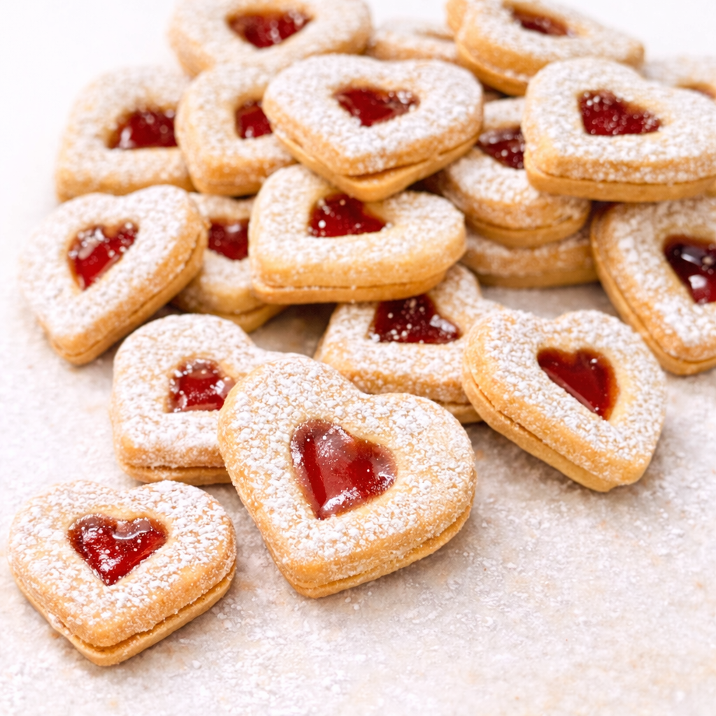 Zutaten: Weizenmehl, Gluten, Butter, Eier, Margarine, Zucker, Himbeer – Johannisbeer- Konfitüre, Geliermittel Pektin, E440, Aprikosenkonfitüre Glucose-Fructose-Sirup, Säuerungsmittel Citronensäure E330,