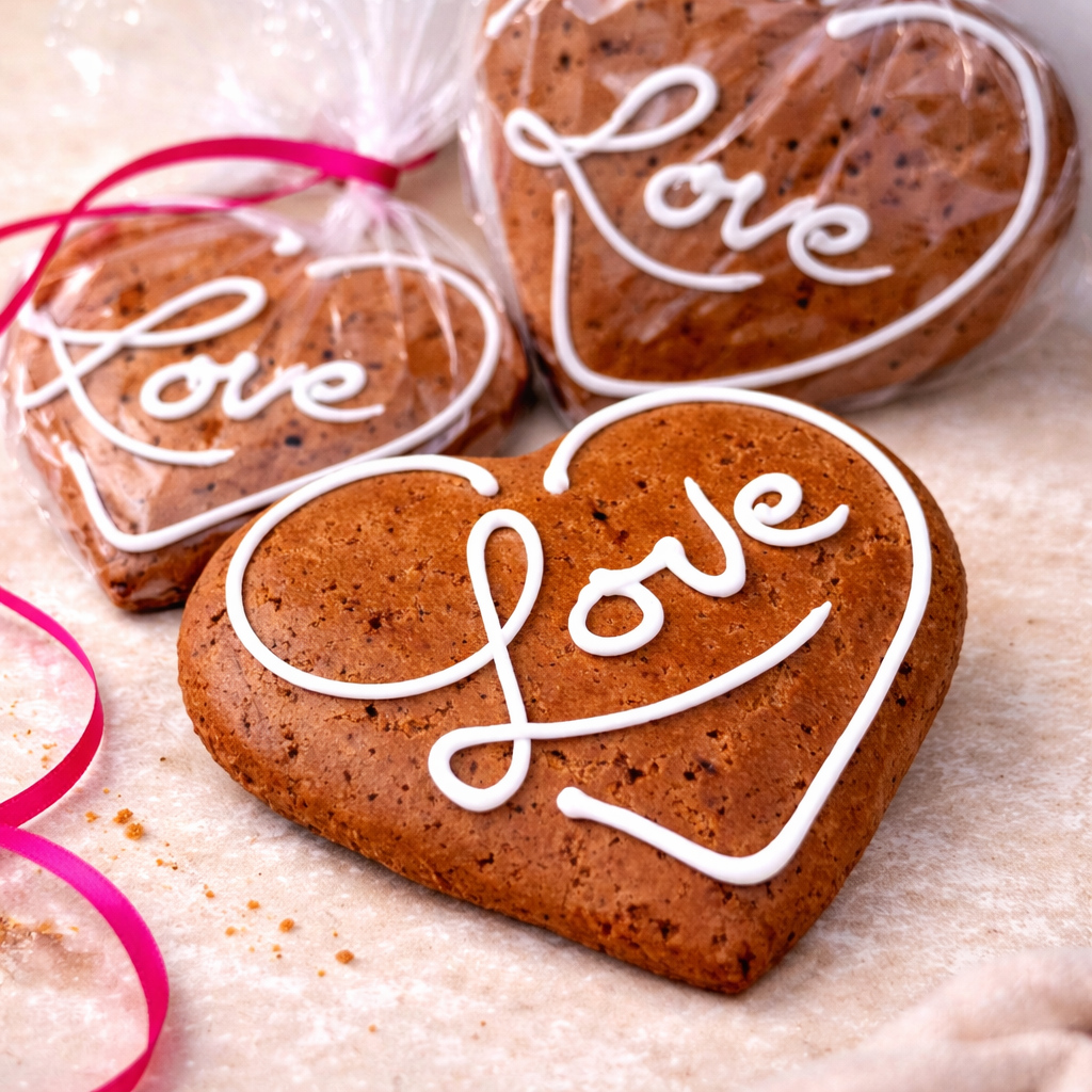 Zutaten: Lebkuchen: Horie: Weizenmehl, Roggenmehl, Wasser, Eigelb, Milch, Natrons Hirschhornsalz, Pottasche (Allergene: Eier: Weizengluten, Rossengluten: Milch) Baiser: HÜHNEREIKLAR und Puderzuckern