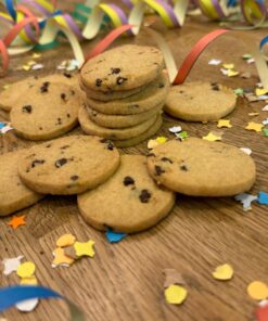 Zutaten: Weizenmehl, brauner Zucker, Butter, Eier, Schokodrops, Vanille Aroma – (Aromaextrakte, natürliche Aromastoffe, Wasser, Xanthan, Ethyhlalkohol, Propeynclycol, Karamellzuckersirup), Backpulver – (Natriumpyrophosphat E450, Natriumhydrogencarbonat E500, Maisstärke)